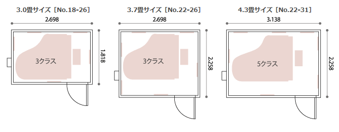 C3クラスがぴったり収まる広さ。グランドピアノ練習用のミニマムサイズです。