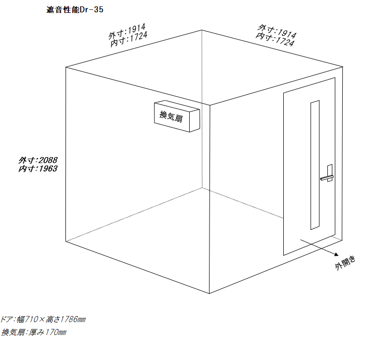 外寸:1914(換気扇+170)×1914×2088㎜ 内寸:1724×1724×1963㎜ |