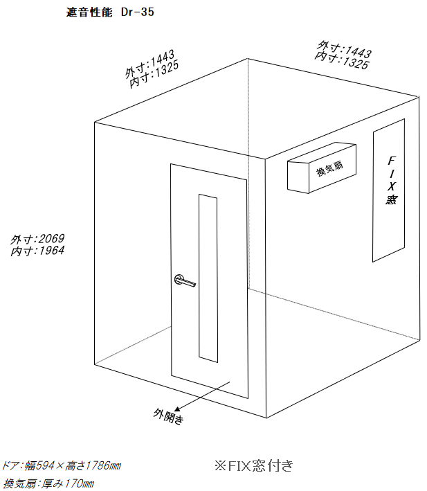 外寸:1443×1443(換気扇+170)×2069㎜ 内寸:1325×1325×1964㎜ |
