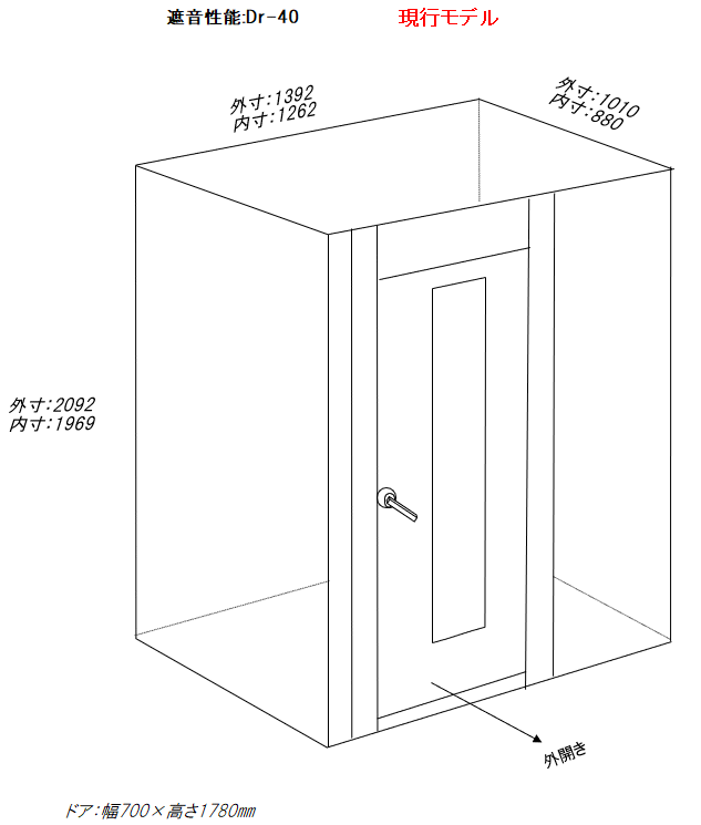 外寸:1010×1392×2092㎜ 内寸:880×1262×1969㎜ |