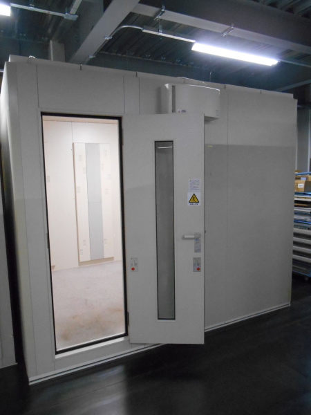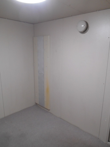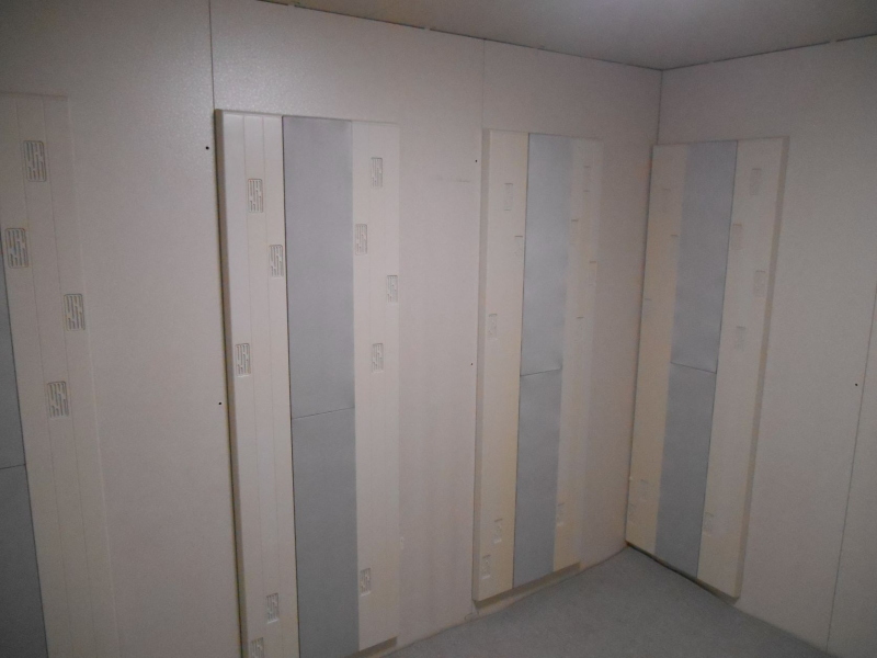 | 仕様 | 床:防振ゴム+床フレーム+高剛性床パネル+遮音床パネル・カーペット仕上げ 壁:遮音壁パネル 内外装仕上げ:オレフィンシート(ホワイト系) コーナー保護カバー:ABS樹脂押出材 天井:遮音天井パネル 内外装仕上げ:オレフィンシート(ホワイト系) ドア:木製防音ドア(透明ガラス窓付き)・内外装仕上げ:オレフィンシート(ホワイト系) 装備:照明・換気扇・2口コンセント・音場パネル・照明スイッチ |