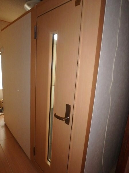 | 仕様 | 床:底床+遮音床パネル・カーペット仕上げ 壁:遮音壁パネル 非塩ビ無機質クロス(ホワイト系) 天井:遮音天井パネル 非塩ビ無機質クロス(ホワイト系) 非塩ビ木口化粧仕上げ(木目調) ドア:木製防音ドア(透明ガラス窓付き)・表面:強化化粧紙仕上げ(木目調)・木口:非塩ビ木口化粧仕上げ(木目調) 装備:換気扇・2口コンセント・照明・FIX窓・音場パネル |