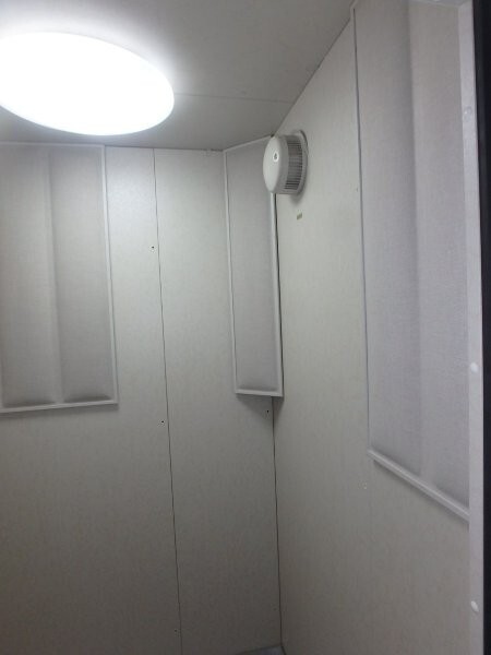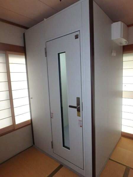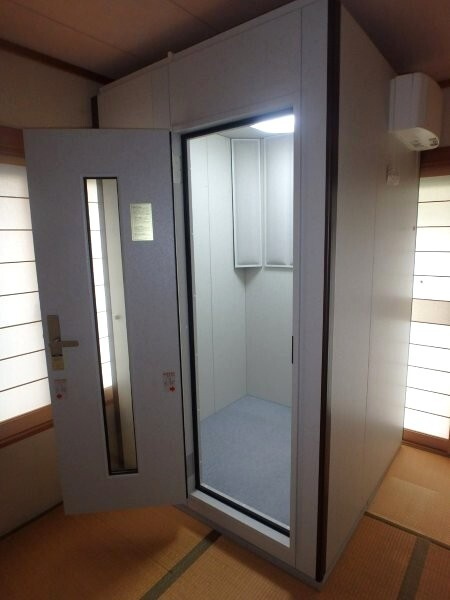 | 仕様 | 床:底床+防振ゴム+床フレーム+遮音床パネル・カーペット仕上げ 壁:遮音壁パネル 内外装仕上げ:強化化粧紙(パールホワイト色) コーナー化粧カバー:ABS樹脂押出材 天井:遮音天井パネル 内外装仕上げ:強化化粧紙(パールホワイト色) ドア:木製防音ドア(2重透明ガラス窓付き) 表面:強化化粧仕上げ(パールホワイト色) 装備:換気扇・2口コンセント・照明・音場パネル・コーナー音場パネル |