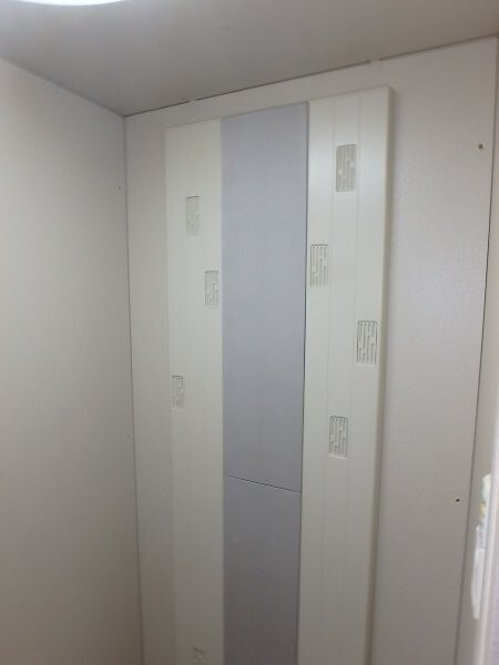 | 仕様 | 床:底床+遮音床+カーペット仕上げ 壁:遮音壁パネル 内外装仕上げ:オレフィンシート(ホワイト系) 天井:遮音天井パネル 内外装仕上げ:オレフィンシート(ホワイト系) ドア:木製防音ドア(透明ガラス窓付)・内外装仕上げ:オレフィンシート(ホワイト系) 装備:照明・換気扇・2口コンセント・音場パネル(壁掛けタイプ) |