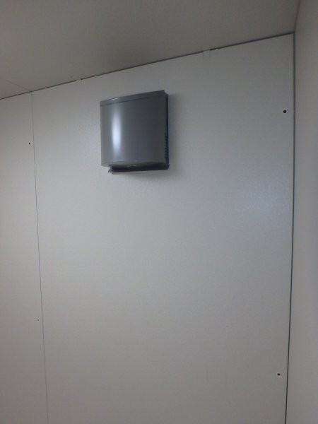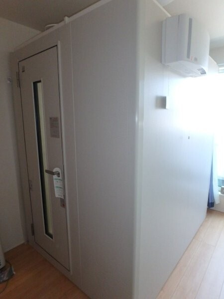 | 仕様 | 床:底床+遮音床パネル、カーペット仕上げ 壁:遮音壁パネル 内外装仕上げ:オレフィンシート(ホワイト系) コーナー保護カバー:ABS樹脂押出材(ホワイト系) 天井:遮音天井パネル、内外装仕上げ:オレフィンシート(ホワイト系) ドア:木製防音ドア (2重透明ガラス窓付き)・内外装仕上げ:オレフィンシート(ホワイト系) 装備:照明・換気扇・2口コンセント・音場パネル |