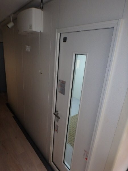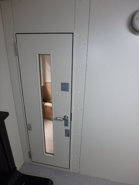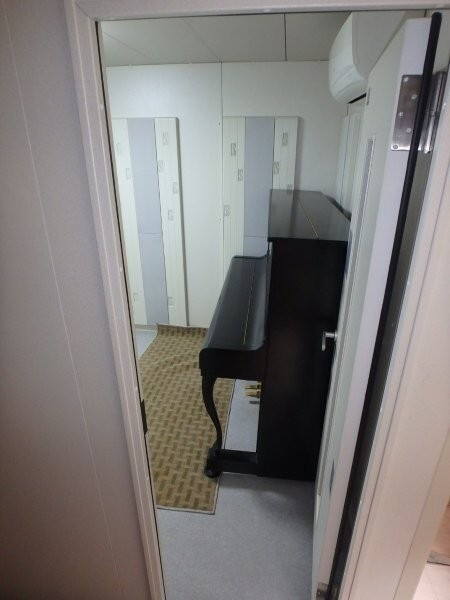 | 仕様 | 床:防振ゴム+床フレーム・カーペット仕上げ 壁:遮音壁パネル 内外装仕上げ:オレフィンシート(ホワイト系) コーナー保護カバー:ABS樹脂押出材(ホワイト系) 天井:遮音天井パネル 内外装仕上げ:オレフィンシート(ホワイト系) ドア:木製防音ドア(透明ガラス窓付き)2箇所付・内外装仕上げ:オレフィンシート(ホワイト系) 装備:照明・換気扇・2口コンセント・音場パネル |