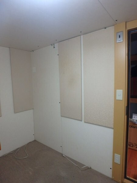 | 仕様 | 床:底床+遮音床パネル+厚床パネル・カーペット仕上げ 壁:遮音壁パネル 非塩ビ無機質クロス(ホワイト系) 天井:遮音天井パネル 非塩ビ無機質クロス(ホワイト系) 非塩ビ木口化粧仕上げ(木目調) ドア:木製防音ドア(透明ガラス窓付き)・表面:強化化粧紙仕上げ(木目調)・木口:非塩ビ木口化粧仕上げ(木目調) 装備:照明・換気扇・2口コンセント・音場パネル |