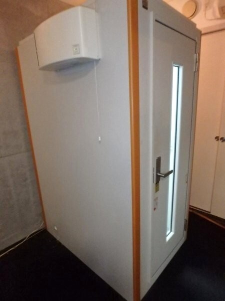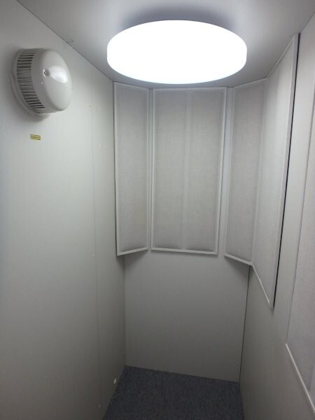 | 仕様 | 床:底床+遮音床パネル+高剛性床パネル+カーペット仕上げ 壁:遮音壁パネル・内外装仕上げ:強化化粧紙(パールホワイト色) コーナー/化粧カバー:ABS樹脂押出材 天井:遮音天井パネル 内外装仕上げ:強化化粧紙(パールホワイト色) ドア:木製防音ドア(透明ガラス窓付き)・表面:強化化粧紙仕上げ(パールホワイト色) 装備:照明・換気扇・2口コンセント・音場パネル・コーナー音場パネル |