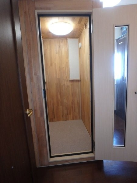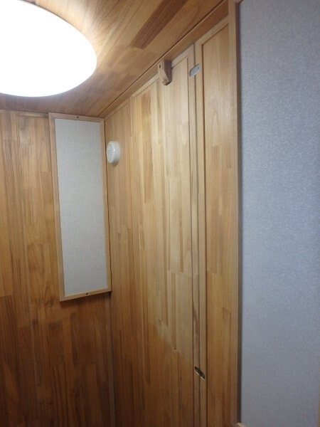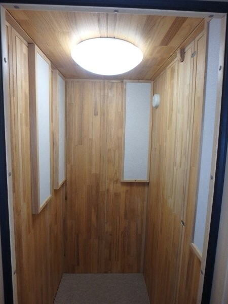 | 仕様 | 床:底床+遮音床パネル・厚床パネル・カーペット 壁:遮音壁パネル 桐(天然ポリウレタン塗装仕上げ) 天井:遮音天井パネル 桐(天然ポリウレタン塗装仕上げ) ドア:木製防音ドア(透明ガラス窓付き)・強化化粧紙仕上げ(木目調) 装備:照明・換気扇・2口コンセント・音場パネル |