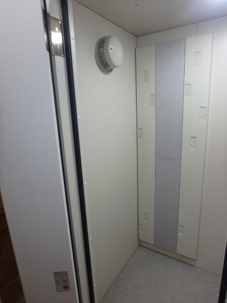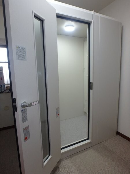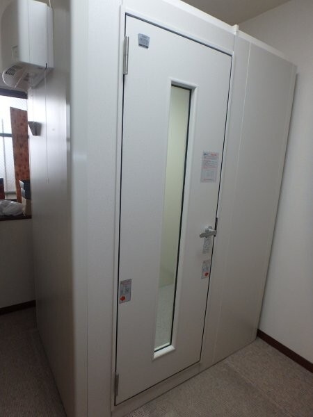 | 仕様 | 床:底床+遮音床+カーペット仕上げ 壁:遮音壁パネル 内外装仕上げ:オレフィンシート(ホワイト系) 天井:遮音天井パネル 内外装仕上げ:オレフィンシート(ホワイト系) ドア:木製防音ドア(透明ガラス窓付)・内外装仕上げ:オレフィンシート(ホワイト系) 装備:照明・換気扇・2口コンセント・音場パネル(壁掛けタイプ) |