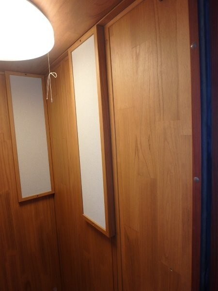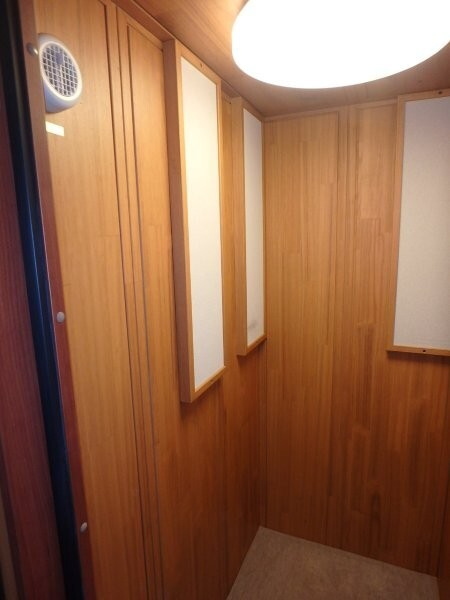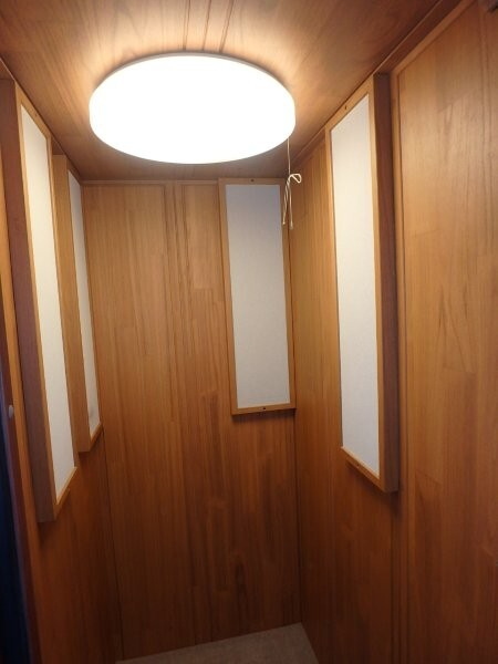 | 仕様 | 床:底床・遮音床パネル・カーペット仕上げ 壁:遮音壁パネル 桐(天然ポリウレタン塗装仕上げ) カラー:ウォームオレンジ 天井:遮音天井パネル 桐(天然ポリウレタン塗装仕上げ) カラー:ウォームオレンジ ドア:木製防音ドア(透明ガラス窓付き)・強化化粧紙仕上げ(木目調) 装備:換気扇・2口コンセント・照明・音場パネル |