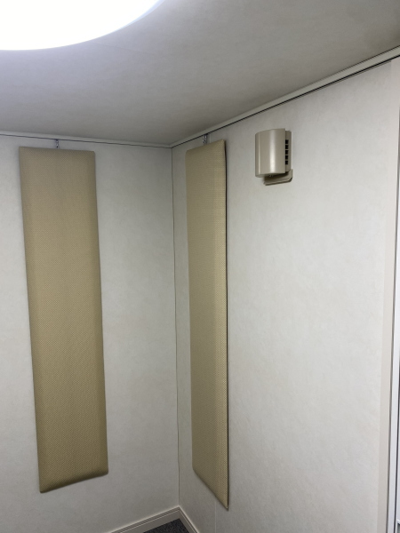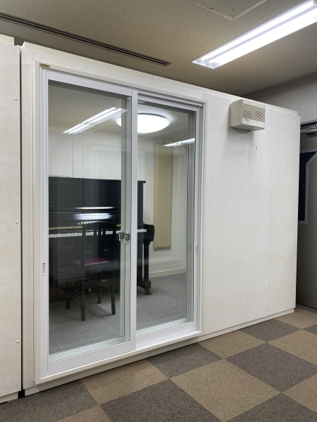 | 仕様 | 床:防振、遮音浮き床(底床+GW+仕上げ合板+サイルシート・カーペット仕上げ) 壁:木製遮音パネル・クロス仕上げ 天井:低音吸音パネル・内部化粧板仕上げ 開口部:2重テラスサッシMサイズ 装備:照明・換気扇・2口コンセント |