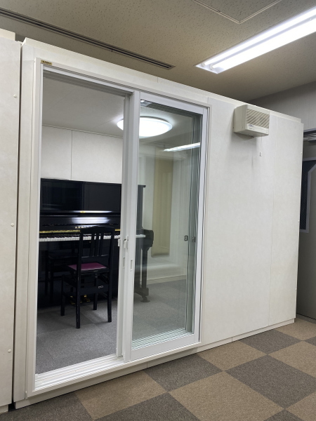 グランドピアノ3クラス(奥行186cm)まで入る防音室です。