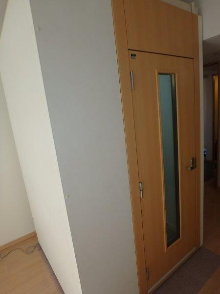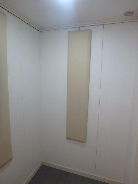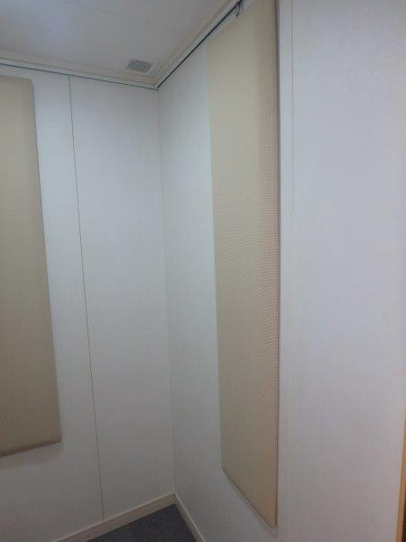 | 仕様 | 床:防振・防音浮床構造+サイルシート1層+タイルカーペット仕上げ 壁:遮音パネル、クロス仕上げ 天井:遮音パネル クロス仕上げ ドア:木製防音ドア(2重透明ガラス窓付き)・マグネットパッキン・レバーハンドル 装備:照明・換気扇・2口コンセント・2連スイッチ・吸音パネル |