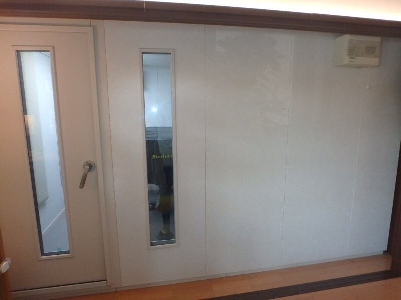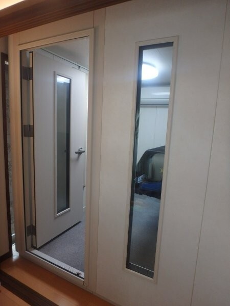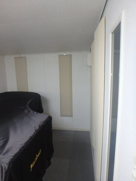 | 仕様 | 床:防振浮き床浮上構造・床補強遮音マット2層/カーペット仕上げ 壁:遮音壁パネル、クロス(非塩ビ)仕上げ 天井:遮音パネル・クロス(非塩ビ)仕上げ ドア:木製防音ドア(2重透明窓付き)・2重ゴムパッキン使用・グレモンハンドル 装備:照明・換気扇・2口コンセント・吸音パネル・FIX窓 |