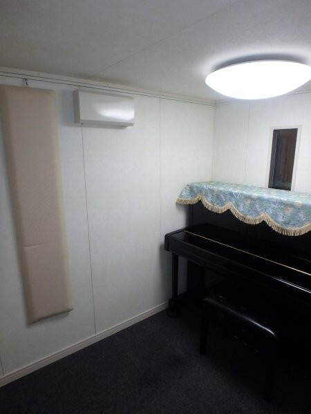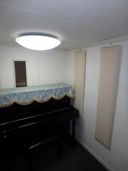 | 仕様 | 床:防振・防振浮き床、カーペット仕上げ 壁:壁遮音パネル(クロス仕上げ) 天井:天井遮音パネル(クロス仕上げ) ドア:木製防音ドア(2重透明ガラス窓付き)・2重ゴムパッキン・グレモンハンドル 装備:換気扇・2口コンセント・照明・吸音パネル・FIX窓 |