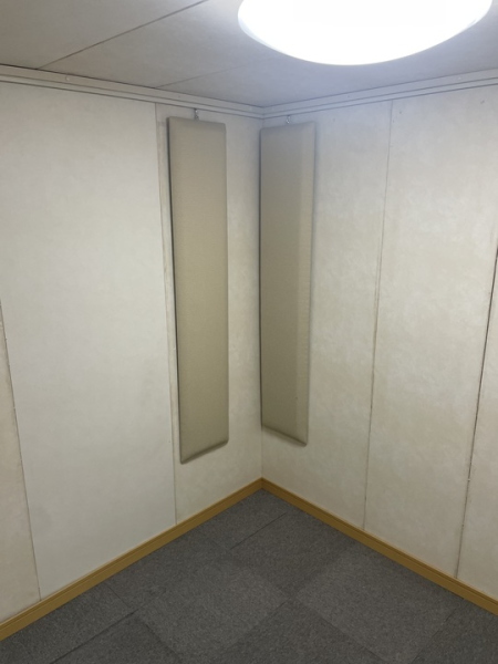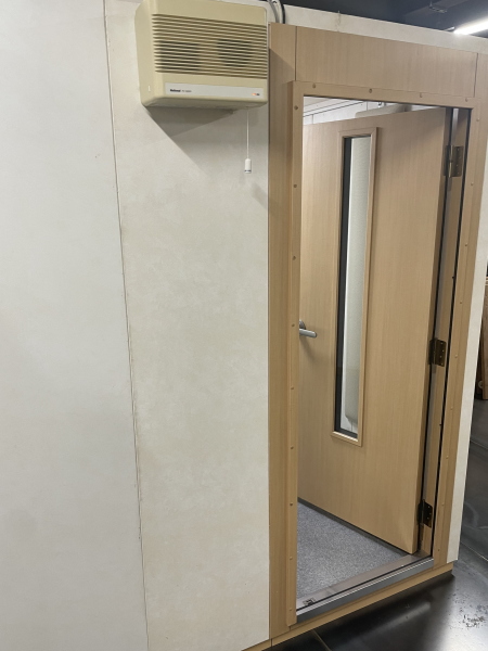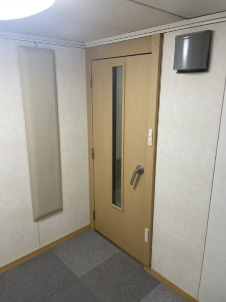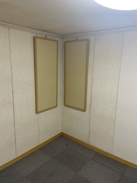 | 仕様 | 床:防振浮き床浮上構造・カーペット仕上げ 壁:遮音パネル・クロス(非塩ビ)仕上げ 天井:遮音パネル・クロス(非塩ビ)仕上げ 開口部:木製防音ドア(2重透明窓付き)・2重ゴムパッキン・グレモンハンドル 装備:照明・換気扇・2口コンセント・吸音パネル |
