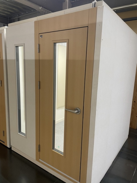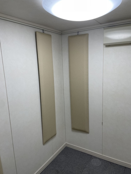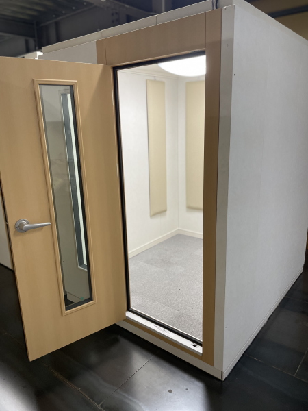 | 仕様 | 床:特床仕様、サイルシート2層、カーペット仕上げ 壁:壁遮音パネル(クロス仕上げ) 天井:天井換気遮音パネル(クロス仕上げ) ドア:木製防音ドア(2重透明ガラス窓付き)・2重ゴムパッキン・グレモンハンドル 装備:換気扇・2口コンセント・照明・吸音パネル・FIX窓 |