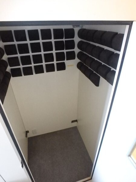 | 仕様 | 床:遮音床パネル・カーペット仕上げ 壁:遮音壁パネル カラー:ホワイト系 天井:遮音天井パネル カラー:ホワイト 吸音スポンジ付き ドア:木製防音ドア(透明ガラス窓付き) 装備:換気扇・2口コンセント |