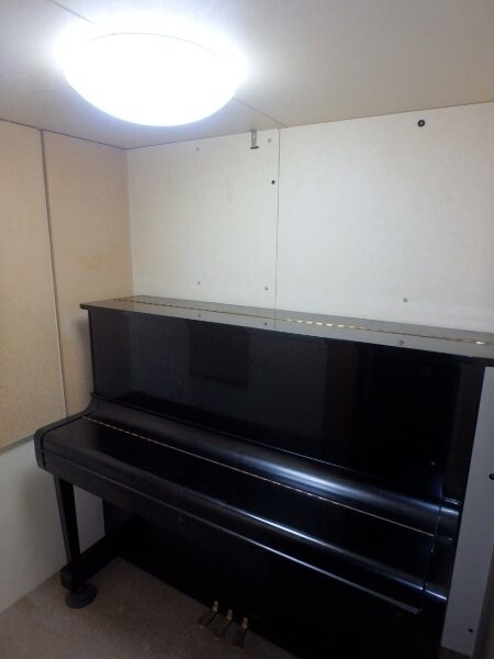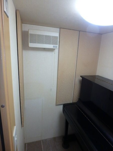 | 仕様 | 床:底床+遮音床パネル・カーペット仕上げ 壁:遮音壁パネル 非塩ビ無機質クロス(ホワイト系) 天井:遮音天井パネル 非塩ビ無機質クロス(ホワイト系) 非塩ビ木口化粧仕上げ(木目調) ドア:木製防音ドア(透明ガラス窓付き)・非塩ビ木口化粧仕上げ(木目調) 装備:照明・換気扇・2口コンセント・音場パネル |
