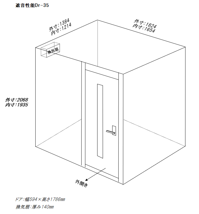 外寸:1384×1824(換気扇+140)×2068㎜ 内寸:1214×1654×1935㎜ |