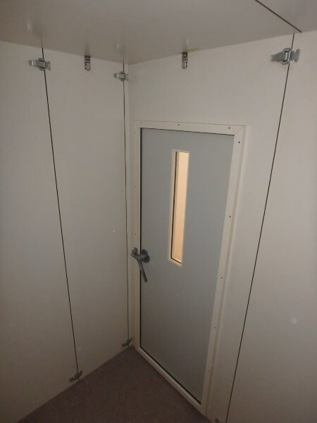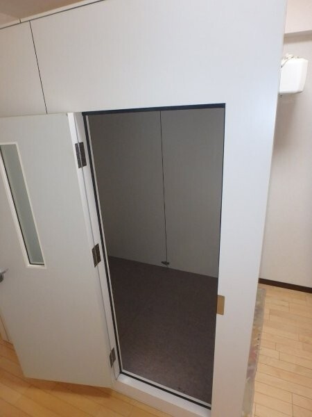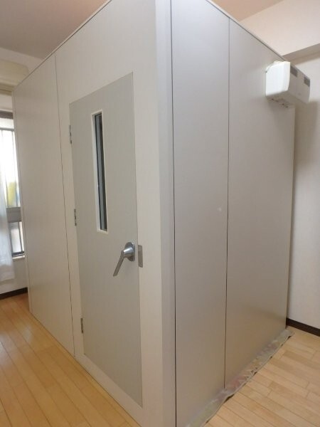 | 仕様 | 床:底床・カーペット仕上げ 壁:遮音壁パネル 天井:遮音天井パネル ドア:木製防音ドア(透明窓付き) 装備:換気扇・2口コンセント |